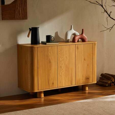 Sideboard in Holzoptik, 3 Türen, 120 cm, skandinavischer Stil