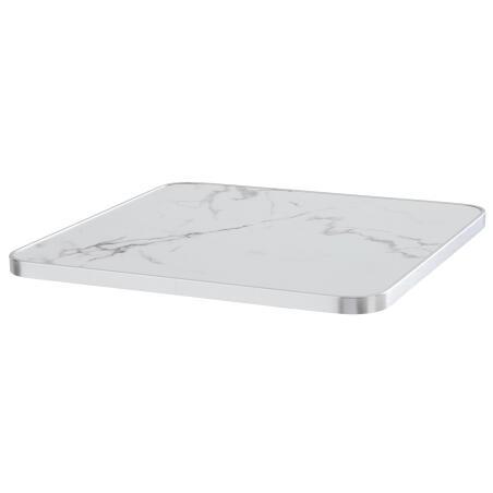 Esstisch aus Laminat für 2 Personen, neigbar, mit Aluminiumkanten und Gusseisenbeinen, 60x60 cm