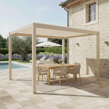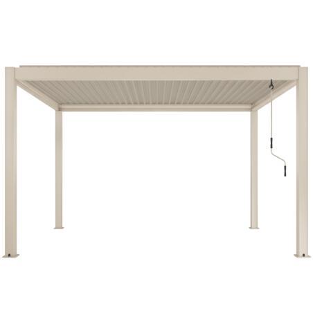 - Beschreibung Motorisierte Freistehend Pergola 4x3 m aus Aluminium creme mit LED-Beleuchtung und mit Markise