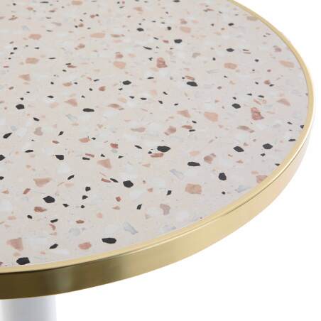 Entscheiden Sie sich für unsere runde Tischplatte, die Funktionalität und Bistro-Stil vereint und auf die Bedürfnisse von Privatpersonen und Profis zugeschnitten ist. Mit einem Durchmesser von 60 cm und einer stabilen Dicke von 2,5 cm eignet sich dieses Tablett perfekt für die bequeme Unterbringung von zwei Personen, sei es für intime Mahlzeiten oder gesellige Kaffeepausen. Die Melaminkante sorgt für eine glatte, langlebige Oberfläche, die Kratzern und Flecken widersteht und minimalen Wartungsaufwand gewährleistet. Die Eukalyptus-Sperrholzplatte sorgt für eine natürliche und warme Note und sorgt gleichzeitig für Festigkeit und Leichtigkeit, ideal für den täglichen Gebrauch im Außen- und Innenbereich. Für zusätzlichen Schutz verstärkt das Aluminiumband nicht nur die Kanten, sondern verleiht der Ästhetik auch einen zeitgemäßen Touch und sorgt gleichzeitig dafür, dass die Platte auch bei starker Beanspruchung in ausgezeichnetem Zustand bleibt. Dieses durchdachte Design macht dieses Tablett zur bevorzugten Wahl für Cafés, Restaurants oder Familienküchen. Diese Tischplatte vereint klassischen Stil und Robustheit und ist die perfekte Wahl für alle, die ein Stück suchen, das sowohl praktisch als auch dekorativ ist und jedem Raum Charakter verleihen kann. Verwandeln Sie Ihre gemeinsamen Momente, indem Sie sie mit diesem hübschen Tablett mit zeitlosem Design noch angenehmer gestalten.