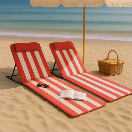 Set mit 2 gestreiften, faltbaren Strandliegen, 5 Liegepositionen