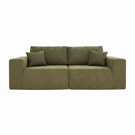 Modulares Sofa 2-Sitzer aus Stoff mit Kissen vereint Komfort und modernes Design und fügt sich nahtlos in Ihr Zuhause ein. Der Bezug aus 100 % Öko-Tex-zertifiziertem Polyestergewebe garantiert Weichheit und Langlebigkeit. Sitz und Rückenlehne bestehen aus hochdichtem Schaumstoff (32 kg/m³) für optimalen Halt. Die Sitzhöhe beträgt 40 cm und die Rückenlehnenhöhe mit Kissen 78 cm. Das modulare und geräumige Sofa misst 200 cm in der Länge, 100 cm in der Tiefe und 78 cm in der Höhe und bietet ausreichend Platz für vier Personen. Dieses Sofa ist ideal, um Ästhetik, Komfort und Funktionalität im Alltag zu kombinieren. Das Sofa wird vakuumverpackt geliefert und ist daher leicht zu transportieren und aufzubauen.