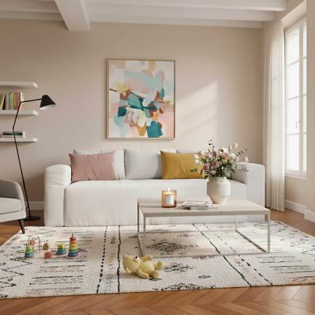 Das 3-Sitzer-Sofa aus geripptem Stoff vereint Komfort und Eleganz mit seinen großzügigen Abmessungen von L200 x T88 x H72 cm und bietet eine Sitztiefe von 65 cm bei 41 cm Höhe für optimalen Halt. Sein klares Design zeichnet sich durch Armlehnen in 58 cm Höhe und eine 60 cm lange Rückenlehne aus, die dank der mitgelieferten Kissen, deren Bezüge zur einfachen Pflege waschbar sind, auf 72 cm erhöht werden kann. Dieses auf Langlebigkeit ausgelegte Sofa ist mit einer hochelastischen Schaumstoffpolsterung von 32 kg/m³ ausgestattet, kombiniert mit unabhängigen Federn und einer rutschfesten Basis, die dauerhaften Komfort und ausgezeichneten Halt garantieren. Der gerippte Stoff aus 100 % Polyester bietet eine weiche und trendige Textur, während das Nettogewicht von 31,5 kg von seiner Robustheit zeugt. Dieses Sofa ist ideal für ein modernes Wohnzimmer und bietet drei Personen einen freundlichen und einladenden Platz.