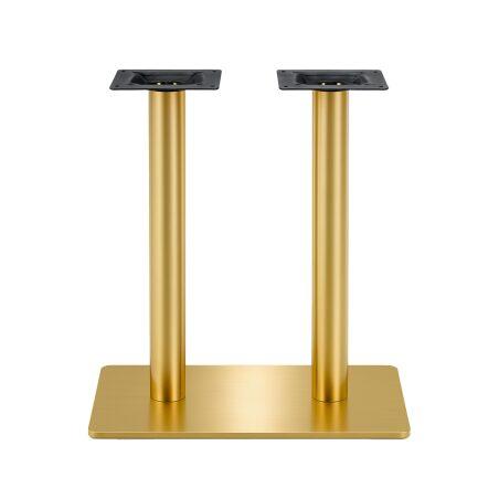 Dieses 70 cm hohe Doppel-Tischbein aus Metall vereint Robustheit und Eleganz. Seine Säule aus Edelstahl (Ø 76 x T 1,35 mm) ruht auf einem stabilen Sockel mit den Maßen 45 x 45 cm im Kreuz oder 25 x 25 cm im Quadrat, ausgestattet mit einer Edelstahlabdeckung und einer inneren Stahlplatte. Die obere Platte besteht ebenfalls aus Stahl und gewährleistet eine solide Befestigung Ihrer Tischplatte. Für perfekte Stabilität auf allen Oberflächen ist es mit 5 verstellbaren schwarzen Endkappen ausgestattet.