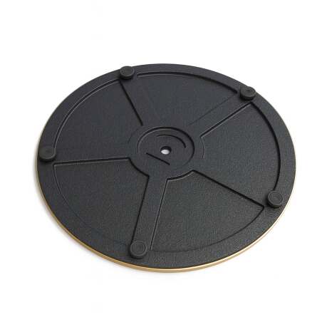 Das 72 cm hohe Tischgestell MONTAIGNE aus Metall und Gusseisen vereint mit seinem kompakten Fußdurchmesser von 40 cm Robustheit und Eleganz.Die zylindrische Säule mit 76 mm Durchmesser aus schwarz pulverbeschichtetem Metall mit gebürsteter, matter Oberfläche wird durch ein glänzendes Golddetail am Fuß veredelt und verleiht ihm eine edle Note.Kreuz und Fuß aus massivem Gusseisen sorgen für optimale Stabilität, während die glänzende Edelstahlabdeckung die edle Ästhetik unterstreicht.Für perfekten Halt auf allen Bodenarten ist dieses Tischgestell mit vier verstellbaren Füßen ausgestattet, die Funktionalität und Stil zugleich gewährleisten.